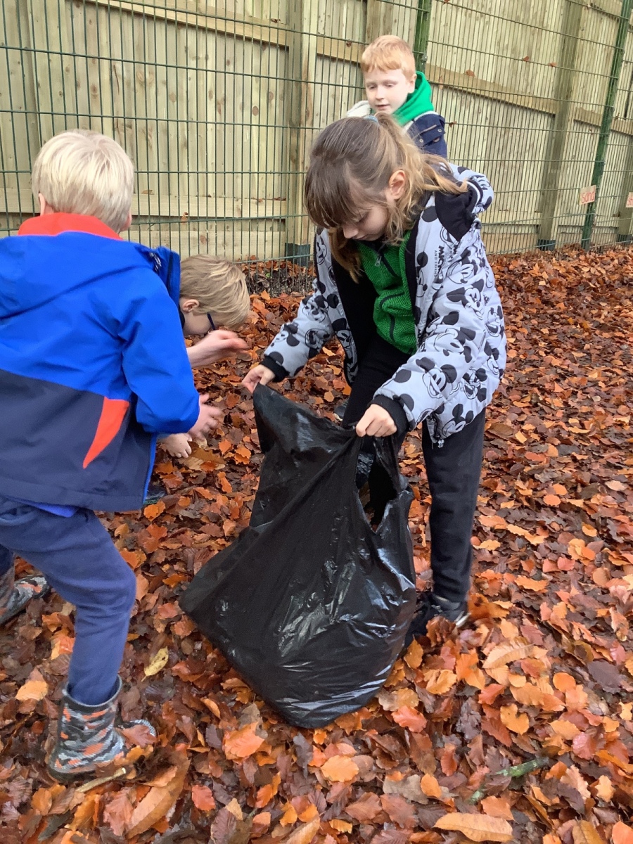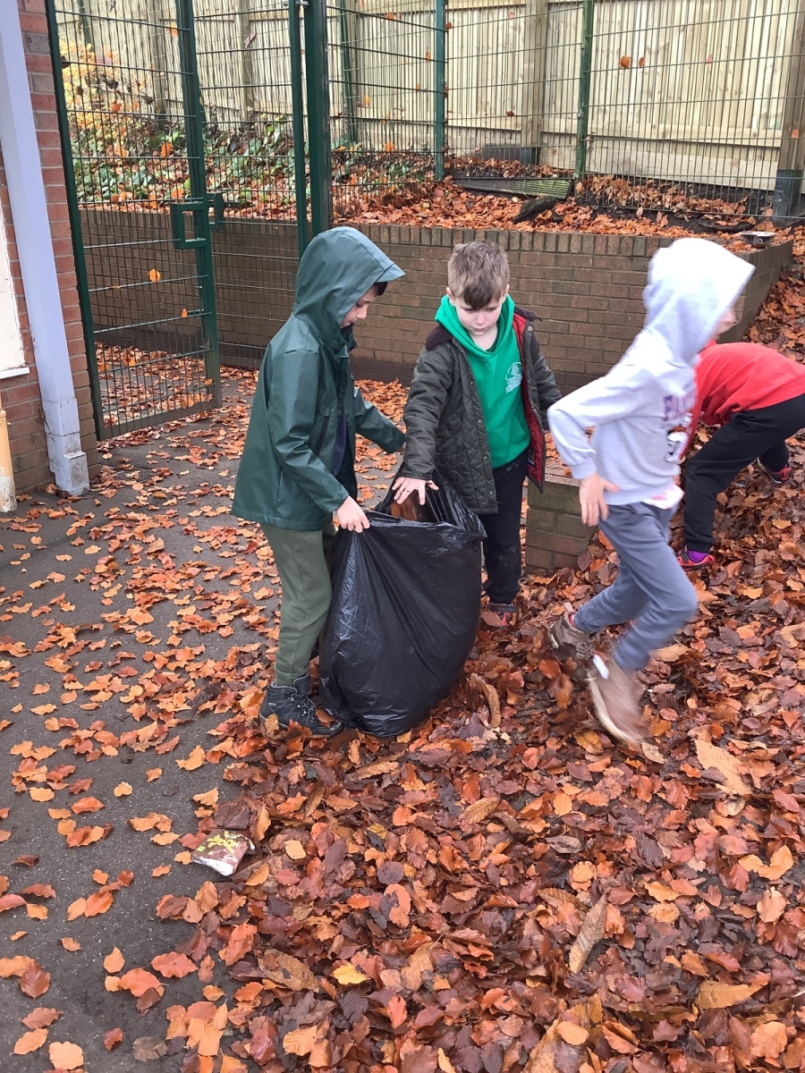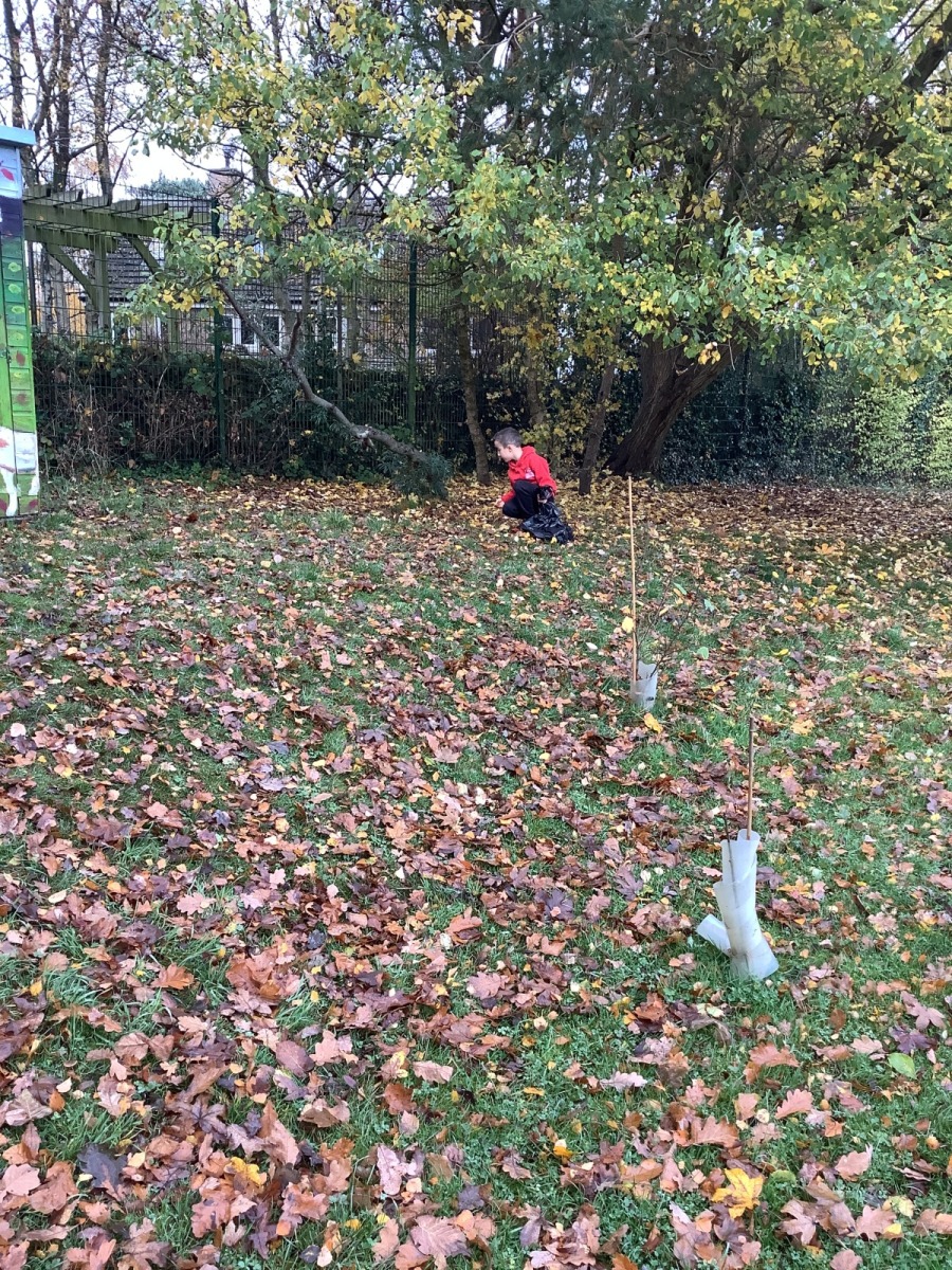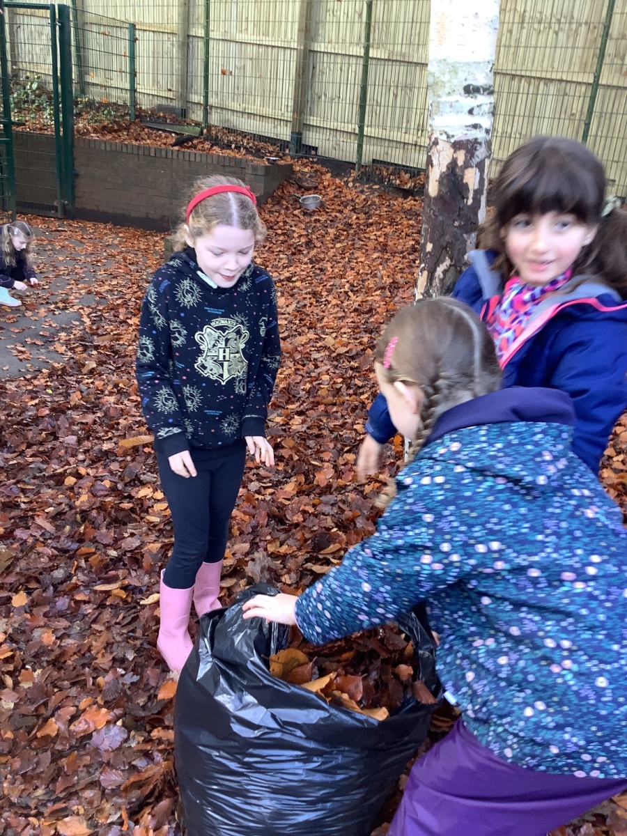 On Friday, Year 3 took part in their second session with Grow to School. In it, they carried out some weeding of the new growing beds they created last time as well as planting garlic, broad beans and transplanting more winter lettuce into the beds. Children also learnt about compost and how to make leaf mould -a crumbly, earthy type of compost which takes two years to make- from all the fallen leaves at this time of year before the children set about collecting as many leaves as they could to begin the process. Pupils also learnt about which animals were ‘pals’ for a vegetable garden and which were ‘pests’ through playing a sorting game. Finally, as part of each session, we finish with a science task which links to our science topic and the vegetable garden. This time, children learnt about the water cycle and created their own versions using sticks, leaves, dirt, stones and sand to create mini landscapes which included ponds and trees! We added some grass seed in to see if our water cycle will help it to grow! Fingers crossed!