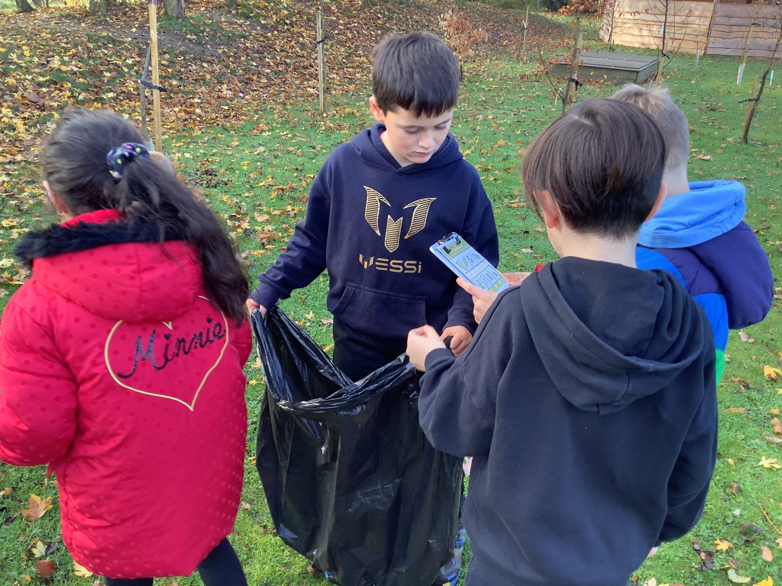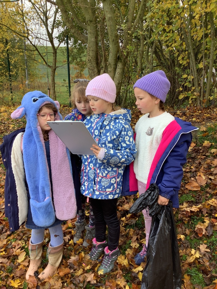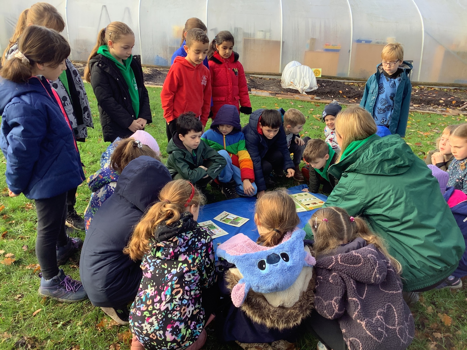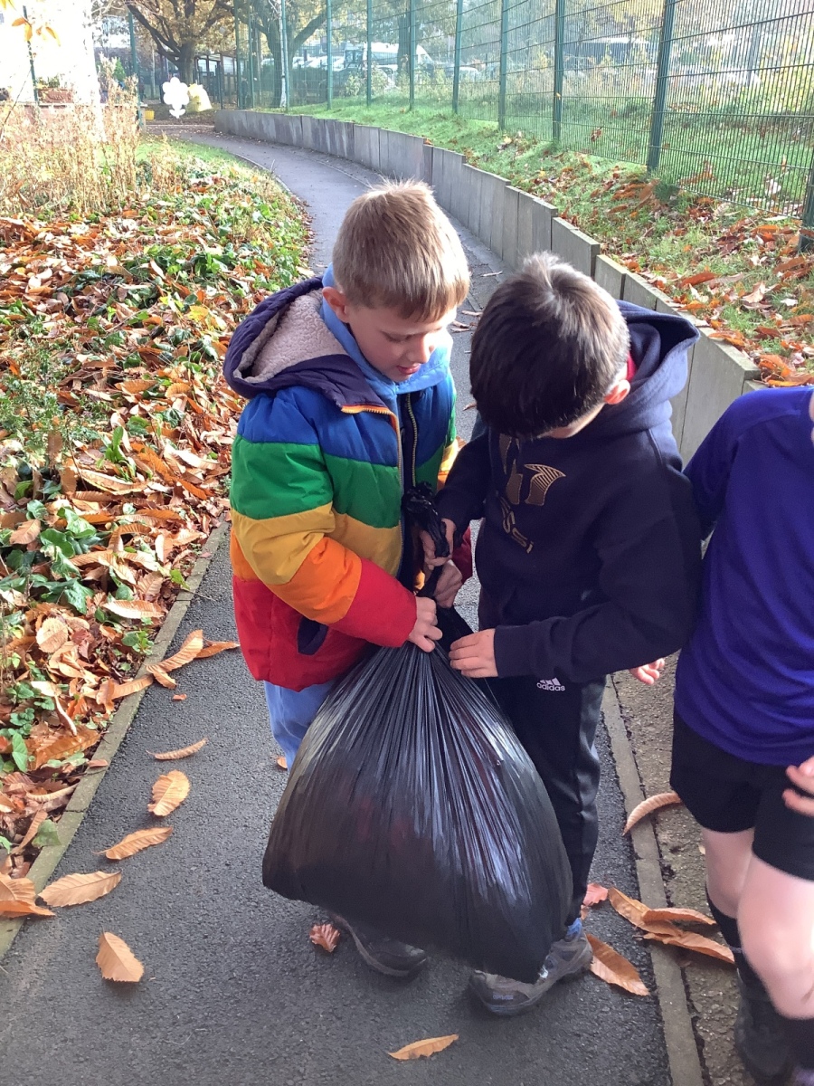 On Friday, Year 3 took part in their second session with Grow to School. In it, they carried out some weeding of the new growing beds they created last time as well as planting garlic, broad beans and transplanting more winter lettuce into the beds. Children also learnt about compost and how to make leaf mould -a crumbly, earthy type of compost which takes two years to make- from all the fallen leaves at this time of year before the children set about collecting as many leaves as they could to begin the process. Pupils also learnt about which animals were ‘pals’ for a vegetable garden and which were ‘pests’ through playing a sorting game. Finally, as part of each session, we finish with a science task which links to our science topic and the vegetable garden. This time, children learnt about the water cycle and created their own versions using sticks, leaves, dirt, stones and sand to create mini landscapes which included ponds and trees! We added some grass seed in to see if our water cycle will help it to grow! Fingers crossed!