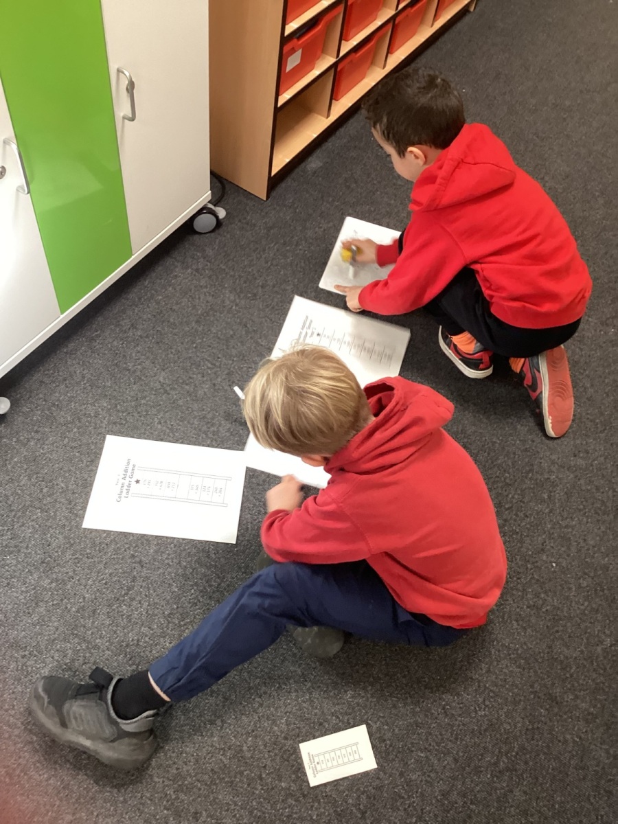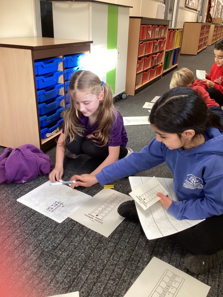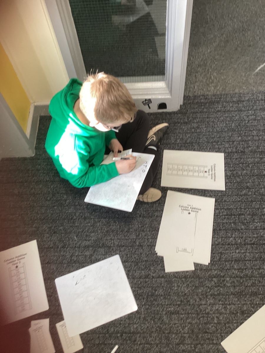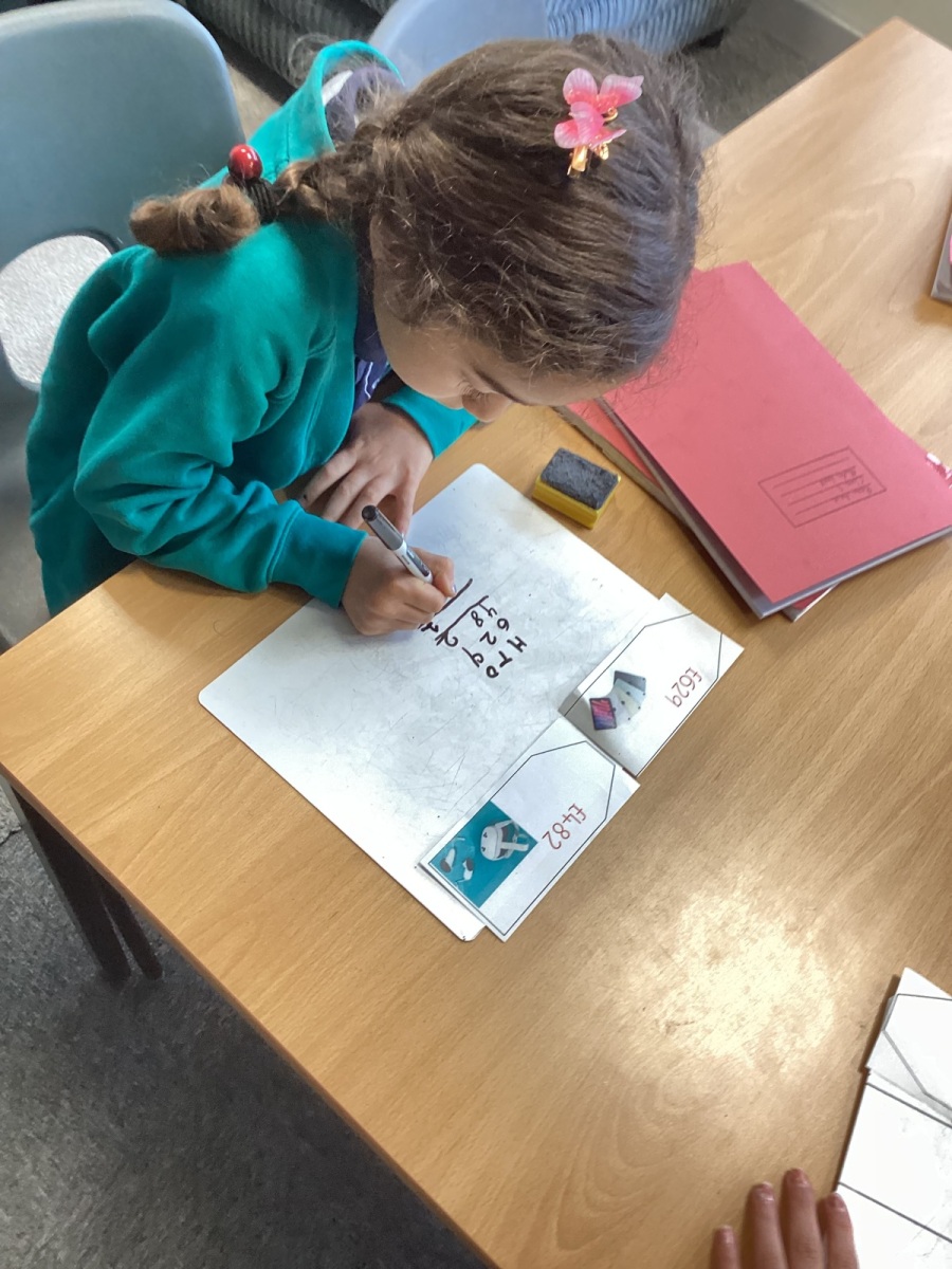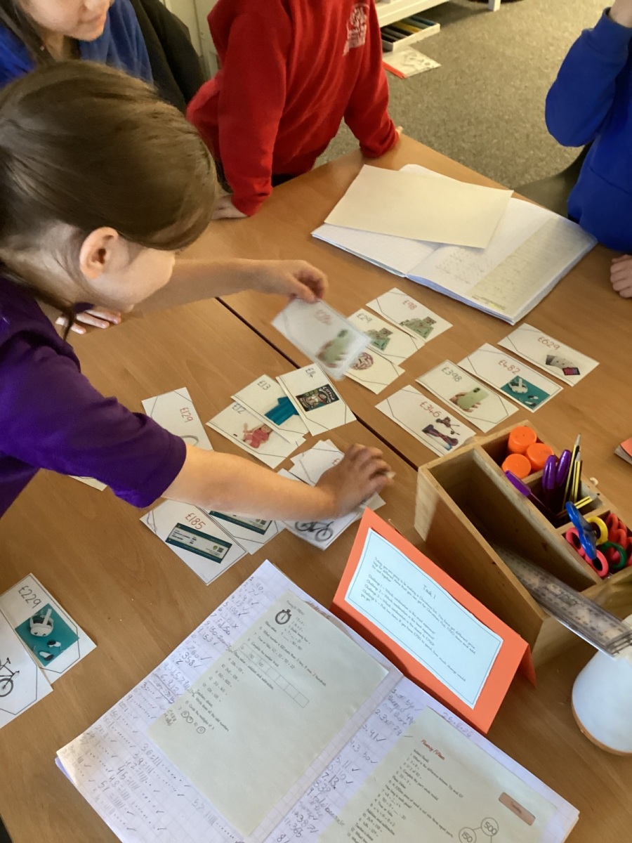 This week in maths, Miss Bourne’s group have been continuing to practise their column addition. They have been working hard to use their knowledge and understanding of place value to show addition of 3 digit numbers using column method. As part of our carousel, they were givensome price tags for possible Christmas presents they would like. They had to add together the cost of the items to find the total. One group practised their addition in a game against a partner. In the game they had to add 3 digit numbers to climb a ladder. The first one to the top won!