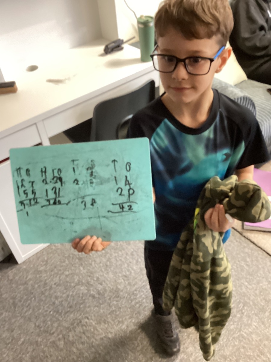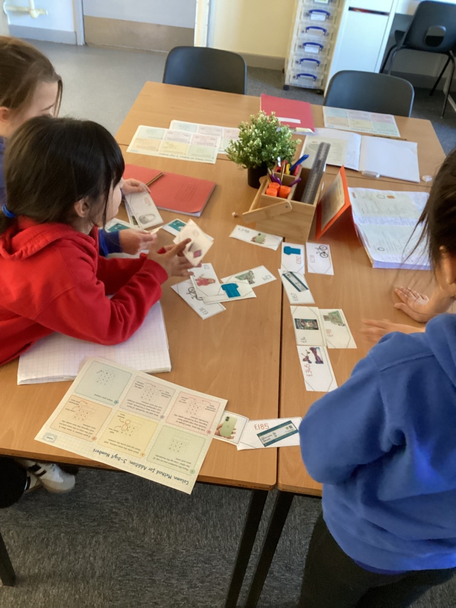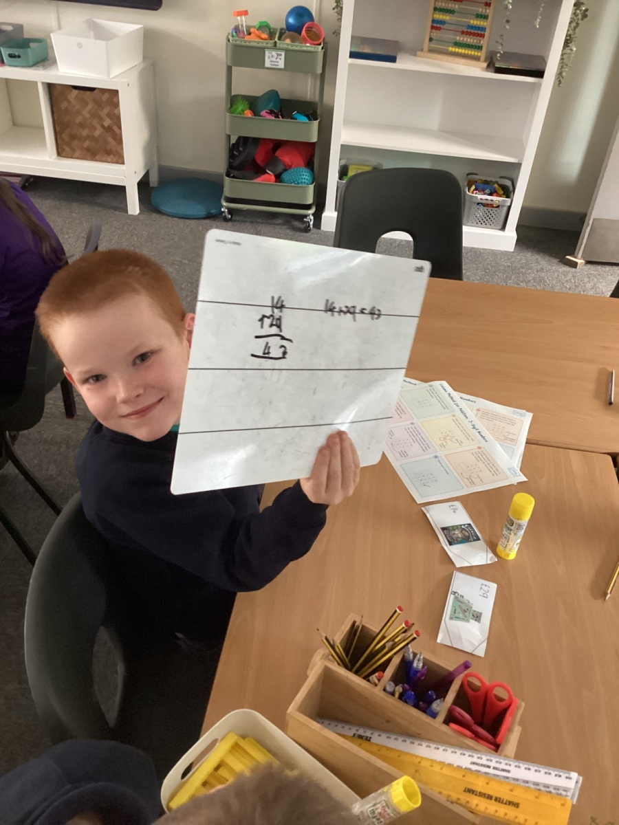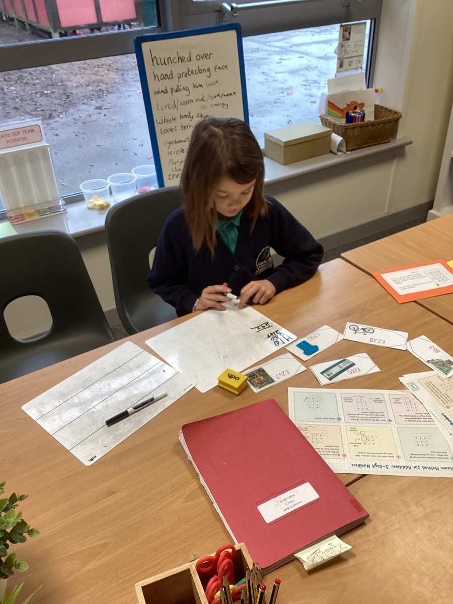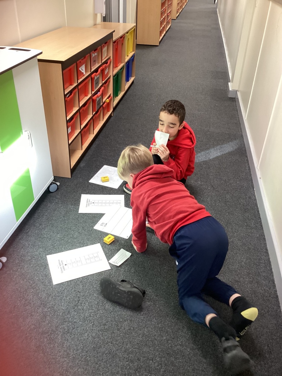 This week in maths, Miss Bourne’s group have been continuing to practise their column addition. They have been working hard to use their knowledge and understanding of place value to show addition of 3 digit numbers using column method. As part of our carousel, they were givensome price tags for possible Christmas presents they would like. They had to add together the cost of the items to find the total. One group practised their addition in a game against a partner. In the game they had to add 3 digit numbers to climb a ladder. The first one to the top won!