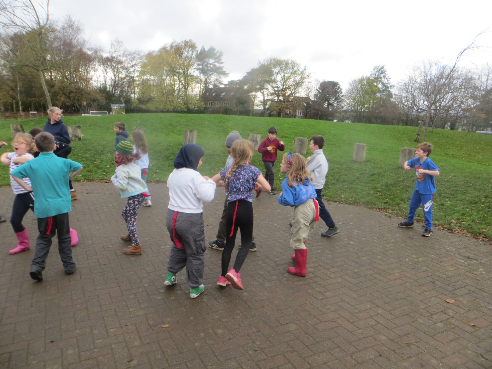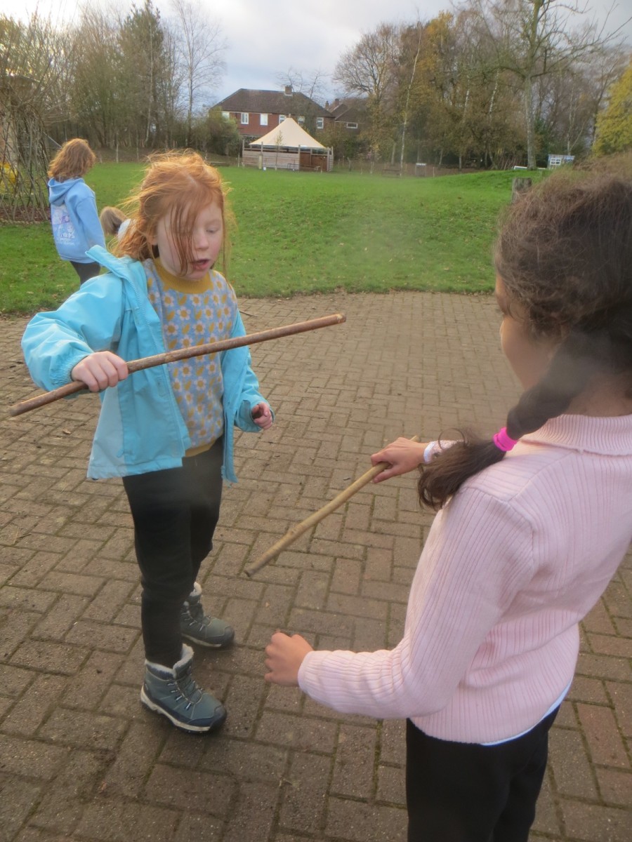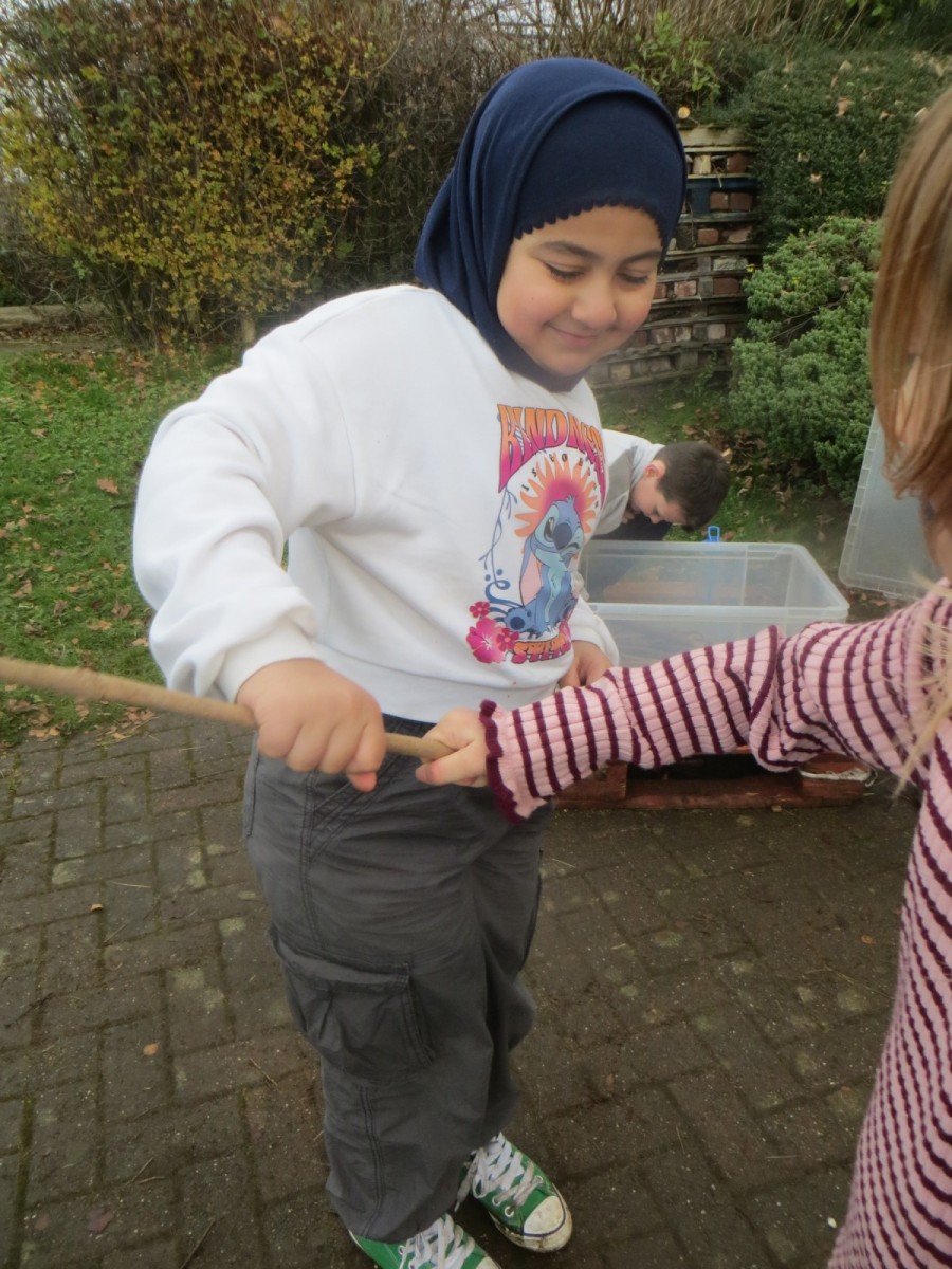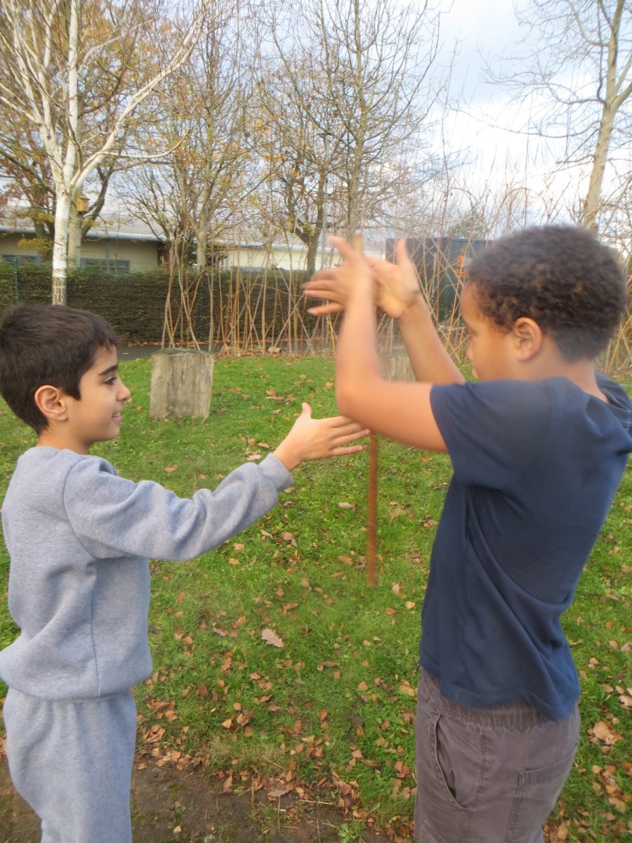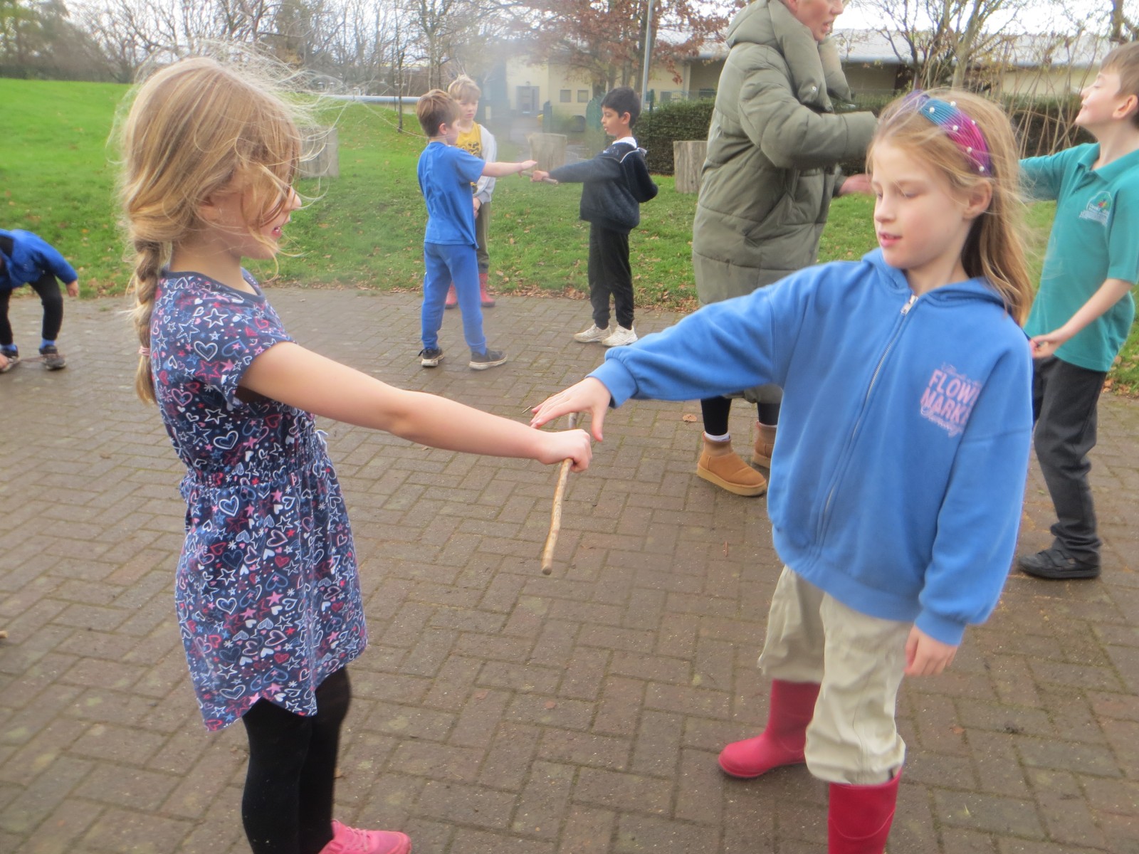 Year 4 children continued learning and developing their knowledge of Forest School games this afternoon in. After a quick recap of the importance of playing games and why we need to know and follow the rules of a game, children began by playing a favourite from last time – ‘Fire and Tarps.’ Next, they learnt a new game called ‘Tail Grab.’ Pupils had to each have a tail and move around the designated area in a specific way announced by Mr Gamble – like an elephant, like a mouse for example. When ‘Tail Grab’ was shouted, pupils had ten seconds to grab as many tails as possible – the one with the most tails won! As the game developed, new rules were introduced to make it harder and/or change the game to keep it interesting. Pupils could then choose to play either Ninja Sticks or Stick Toss from last week in pairs, thinking about how they could develop and adapt the game in preparation for developing their own Forest School games in the weeks ahead.