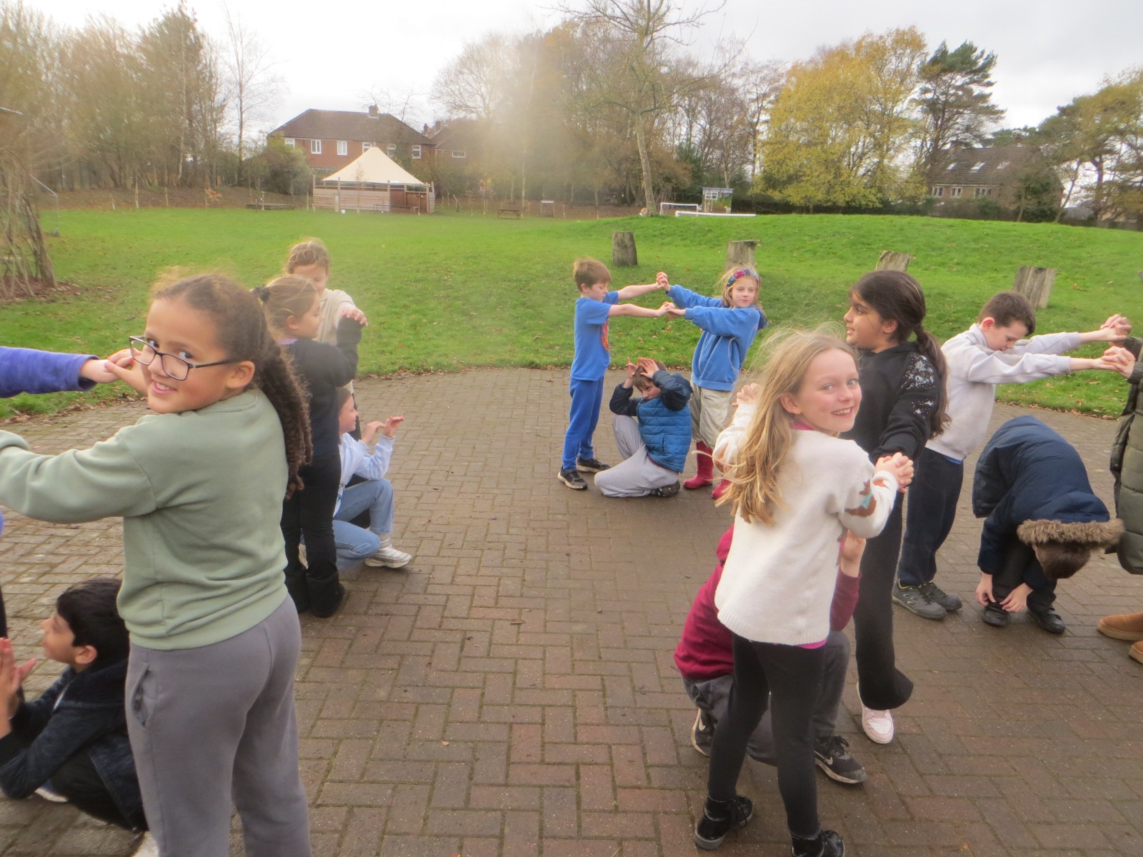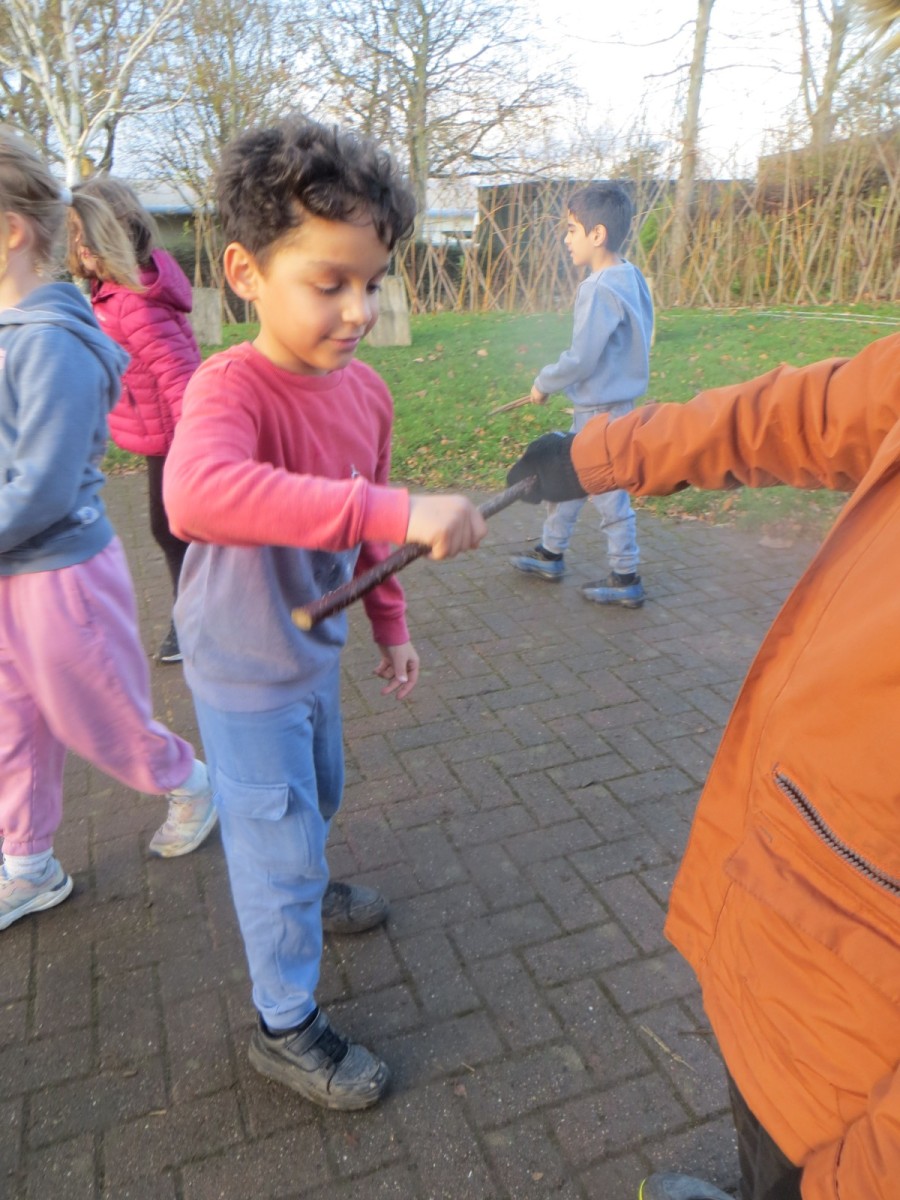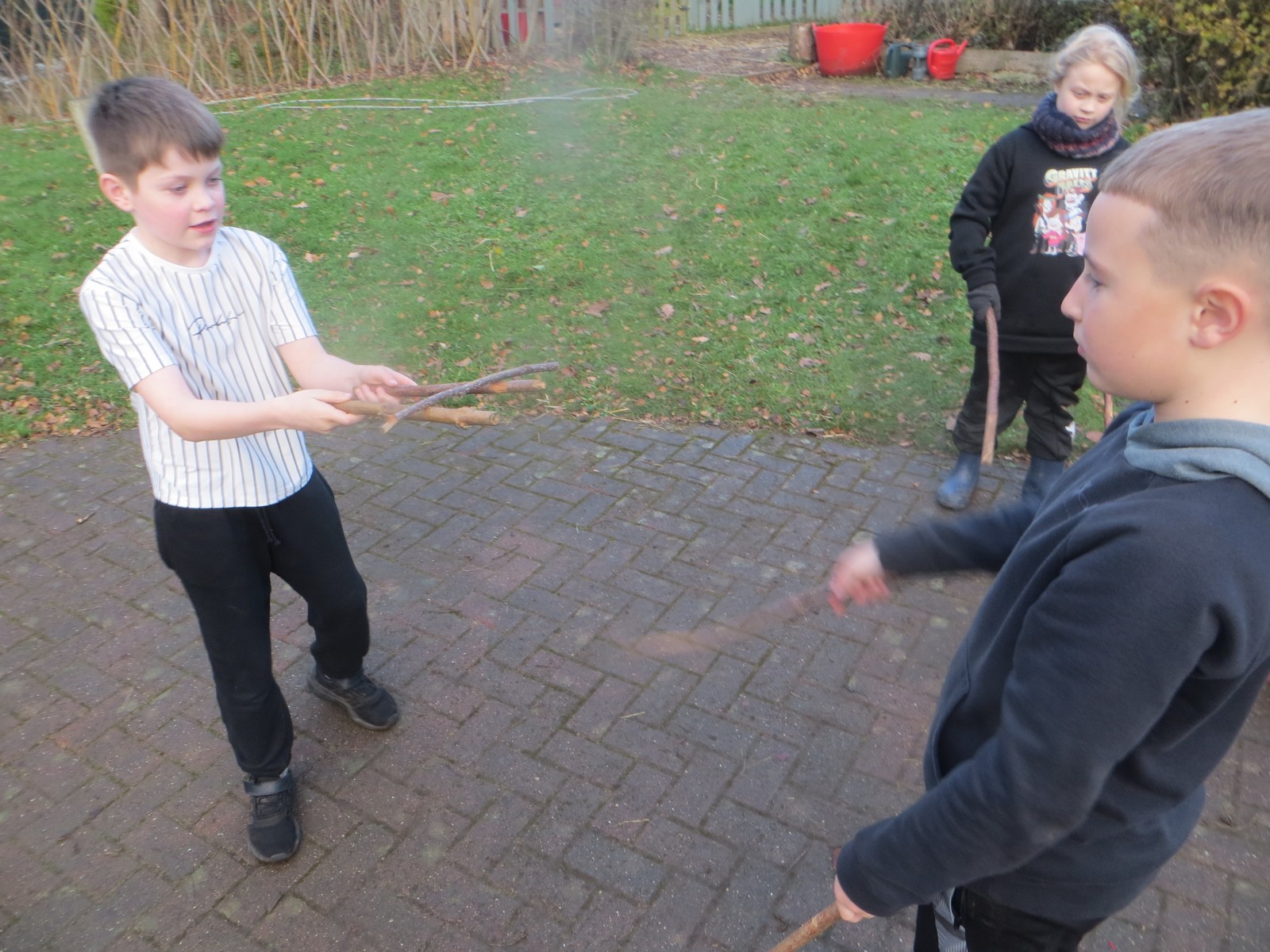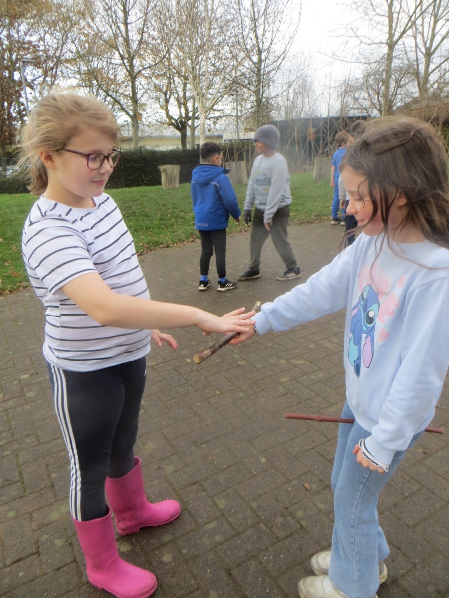 Year 4 children continued learning and developing their knowledge of Forest School games this afternoon in. After a quick recap of the importance of playing games and why we need to know and follow the rules of a game, children began by playing a favourite from last time – ‘Fire and Tarps.’ Next, they learnt a new game called ‘Tail Grab.’ Pupils had to each have a tail and move around the designated area in a specific way announced by Mr Gamble – like an elephant, like a mouse for example. When ‘Tail Grab’ was shouted, pupils had ten seconds to grab as many tails as possible – the one with the most tails won! As the game developed, new rules were introduced to make it harder and/or change the game to keep it interesting. Pupils could then choose to play either Ninja Sticks or Stick Toss from last week in pairs, thinking about how they could develop and adapt the game in preparation for developing their own Forest School games in the weeks ahead.