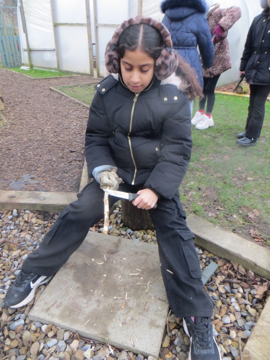 Today, Year 4 pupils have revisited some of the tools they began to use last year in their Forest School sessions. They recapped their knowledge of how to handle and use whittling knives, secateurs and loppers safely and correctly whilst learning what uses and purposes each specific tool has. After helping to lead the safety talk of each tool using their understanding from Year 3, children had to independently observe and follow specific safety rules and instructions for each tool, ensuring the tool they chose was the correct one for what they wanted to achieve and ensured they, and others, remained safe throughout the session. All of Year 4 were incredibly mature and sensible around the tools this afternoon and they’re all very excited to use them again next week – well done everyone!